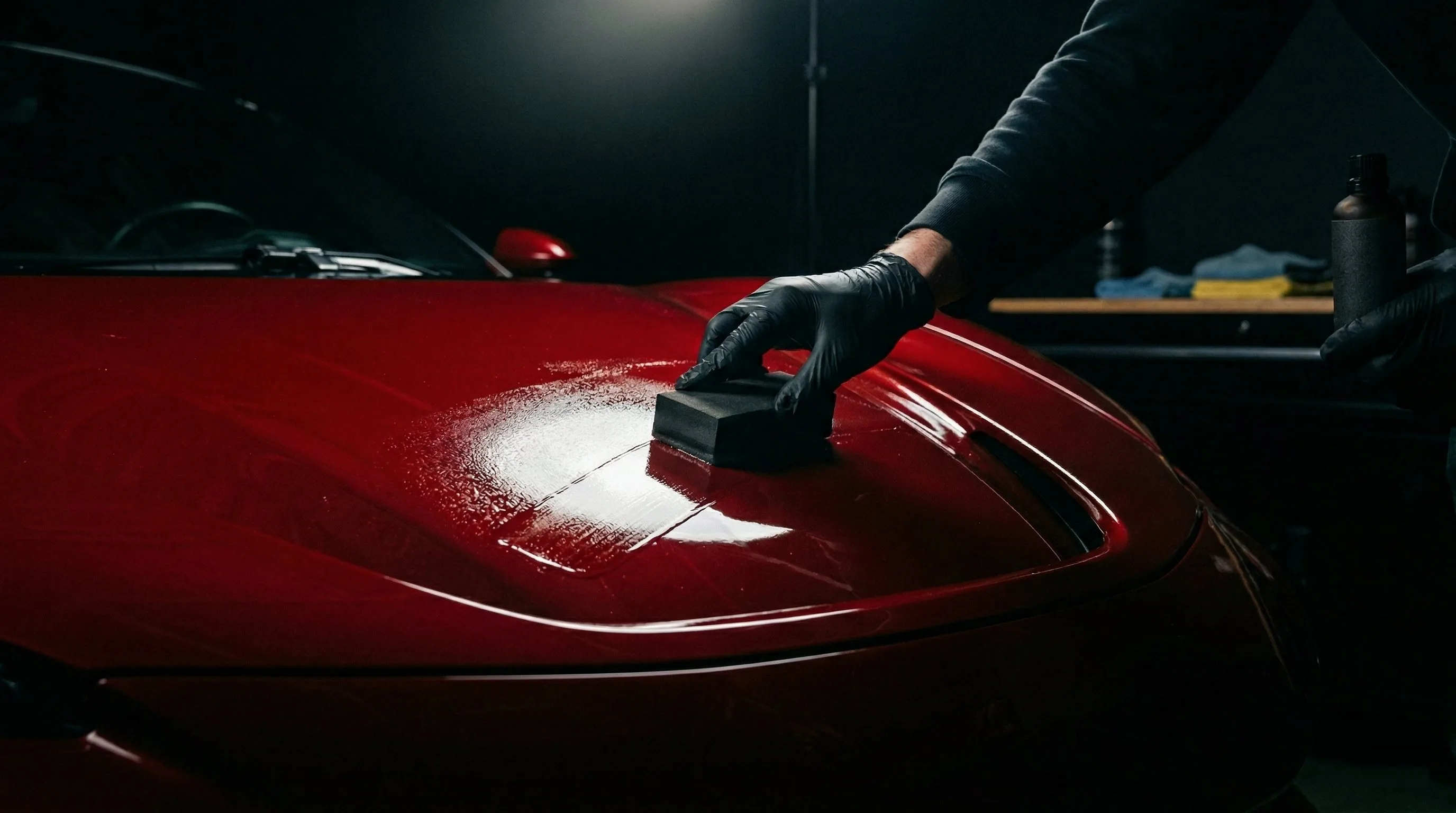 Химически связанный защитный слой твёрдостью 9H. Устойчив к царапинам, UV и агрессивной химии — гидрофобный эффект обеспечивает самоочищение кузова.